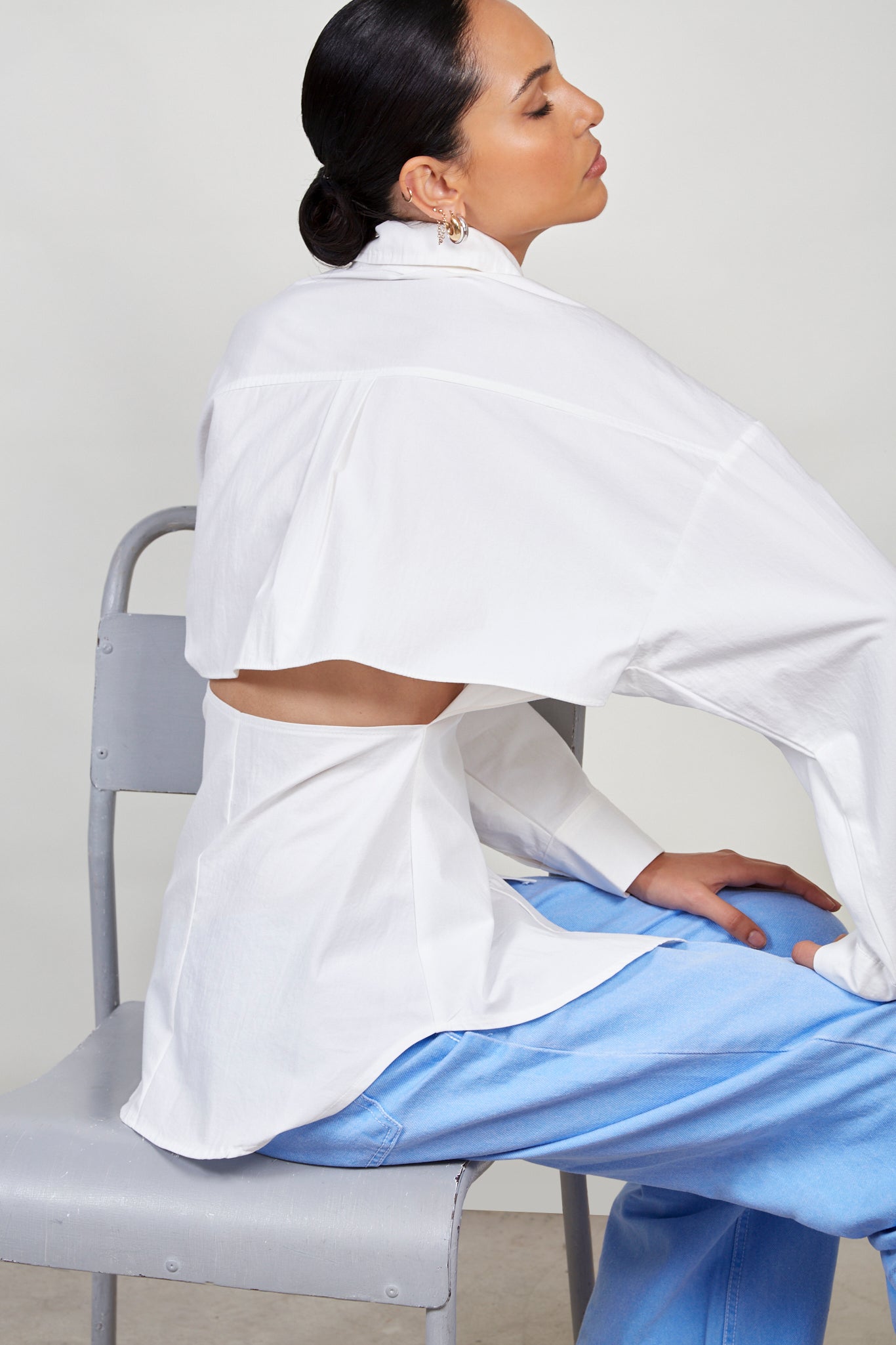 Get to work in the coolest boiler suit in black (or grab the last pink one). This comfortable 100% cotton piece is perfect for Sunday markets as well as everyday activities. Meeting for brunch? Add our crew neck oversized jumper in your favourite bold colour and finish off the look with a vegan leather tote. If your work wardrobe needs a refresh, try the crisp peek back shirt in blue or in white - this twist on a classic shirt is a flattering mix of masculine and feminine energy. Seamlessly take it from the office to the club with some gold jewellery and strappy heels.