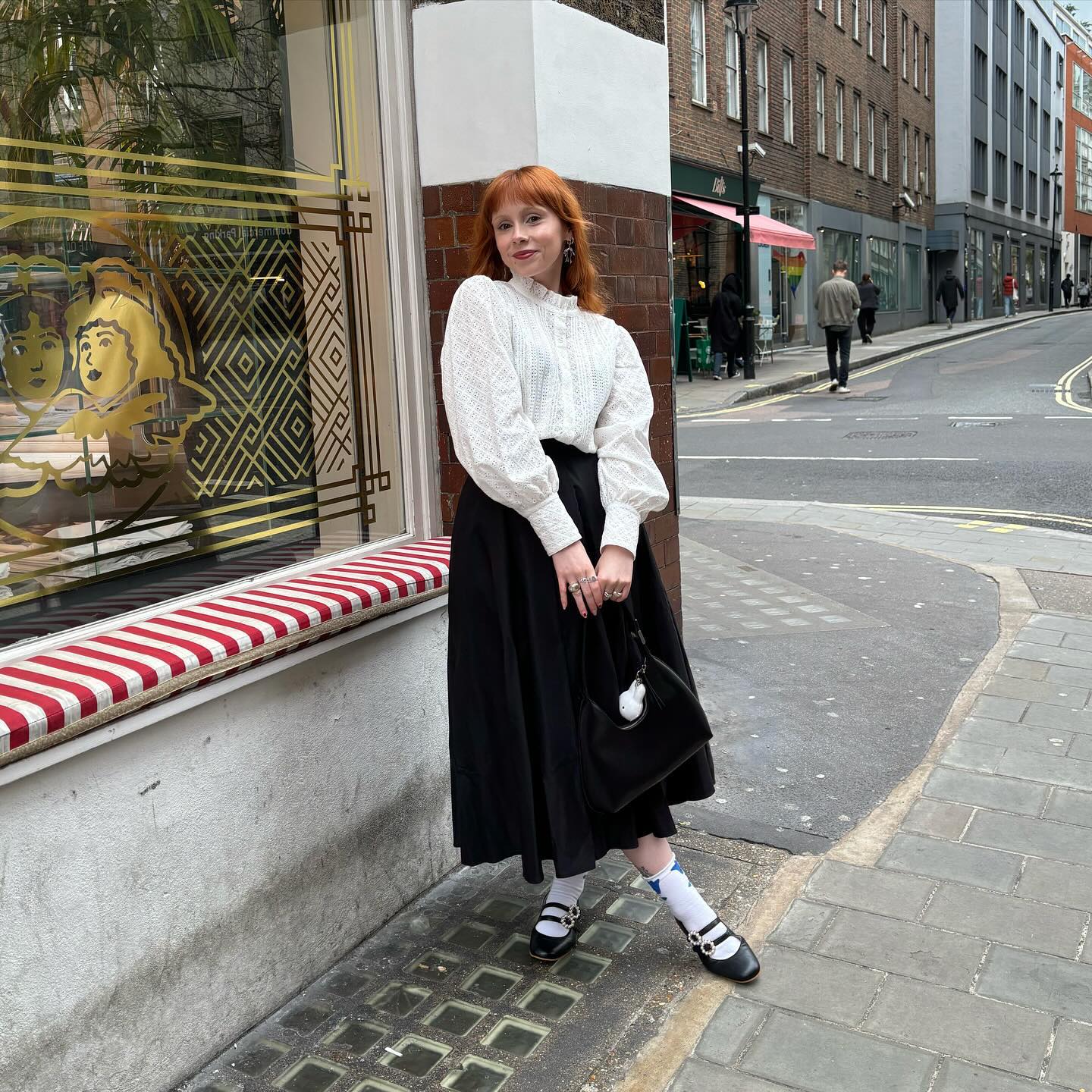 If you're in need of some styling inspo to rock your pleated maxi skirt this season, you've come to the right place. Content creator Amy (@alrstockwell) styled our black pleated skirt to perfection in this black and white outfit. The skirt is perfectly designed to cinch at the waist and flow everywhere else. Pair yours with a white blouse like Amy or opt for a more casual look with a semi sheer white and black weave blouse. To accessorise, Amy went for our black vegan leather shoulder bag, but if you're looking to add some colour, check out the pink cross-body bag. Add a pair of floral socks and your favourite gold hoop earrings to complete the look.