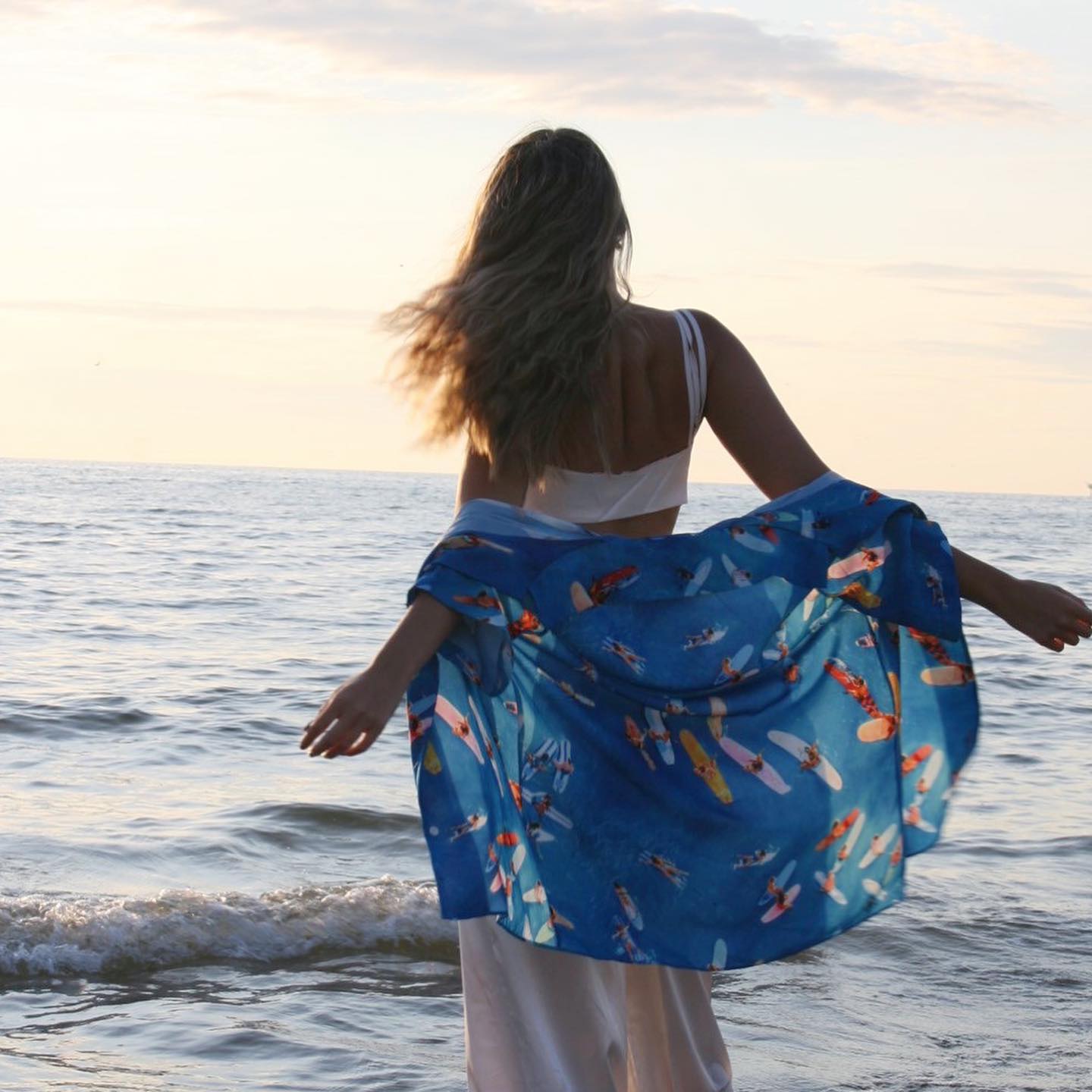 Our statement surf print shirt, as seen here on creator @sianeastmentwilliams, is summer in a shirt. Wear it buttoned or open, (layered with a white bra or bikini top) with light coloured bottoms. For a chic look, try these ivory satin trousers, or opt for a simple pair of white shorts or white cropped jeans. Need more tips? DM or email us for a free styling session in store or virtually.