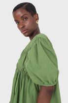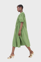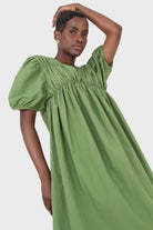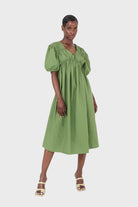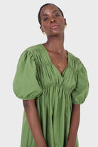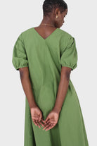 Green ruched seam V neck dress