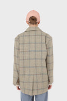 Beige and khaki checked oversized wool blazer