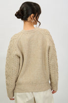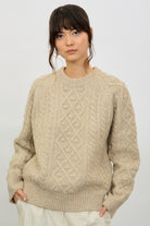 Beige bobble cable knit crew neck jumper