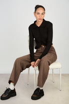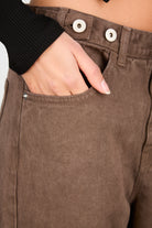 Washed brown adjustable waist double button jeans