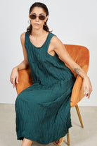 This green wrinkled simple shift dress is perfect for making a statement without being too loud. It features a timeless design and luxurious fabric – perfect for any occasion. It's an effortless way to make a chic, sophisticated statement. Elevate your wardrobe with this luxurious piece.