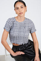 Black and white textured puff tee