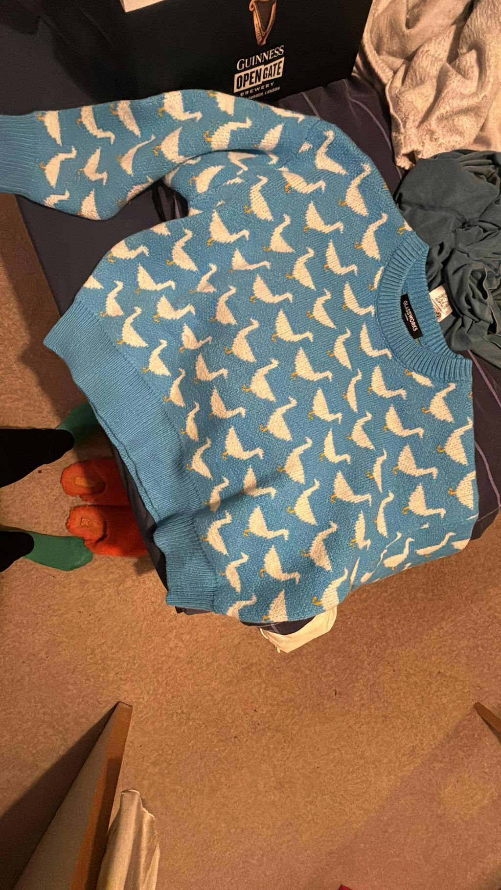 Blue intarsia duck jumper