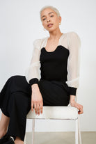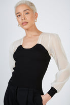 Black and ivory corset knit blouse