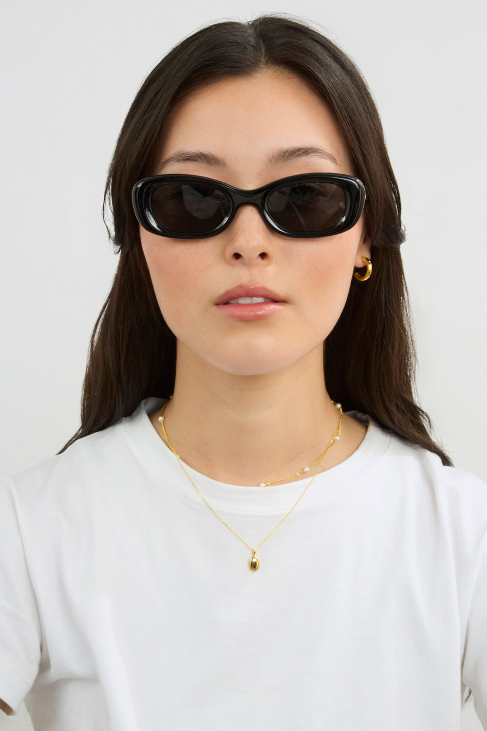 Black thick sloping rectangle sunglasses