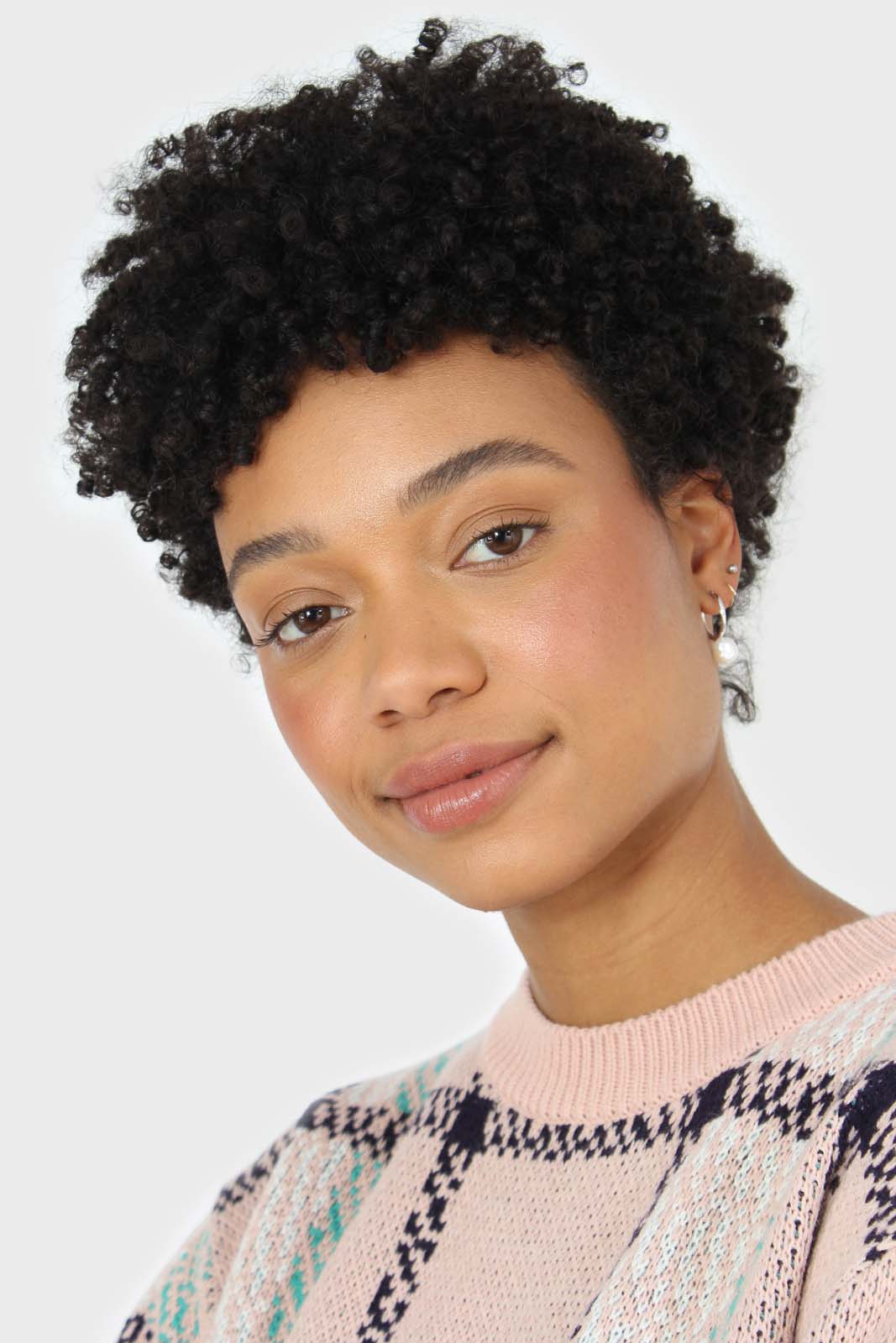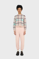 Baby pink and teal checked crew neck jumper