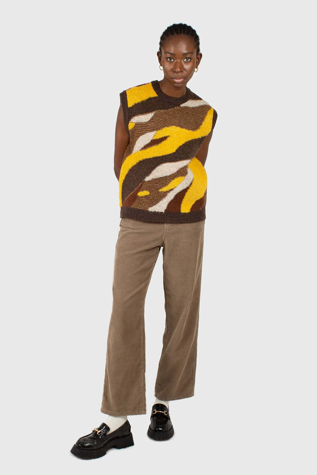 Beige corduroy loose fit trousers - 812