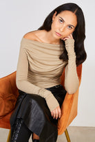 Beige draped front jersey top