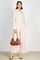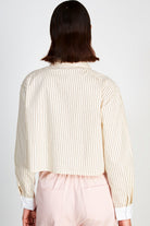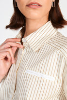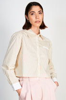 Beige pinstriped smart cropped shirt