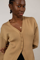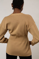 Beige V neck peplum cardigan