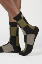 Black and khaki giant block check socks