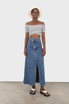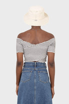 Black and white stripe ruched cropped off shoulder tee