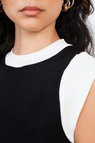 Black and white trim knit vest