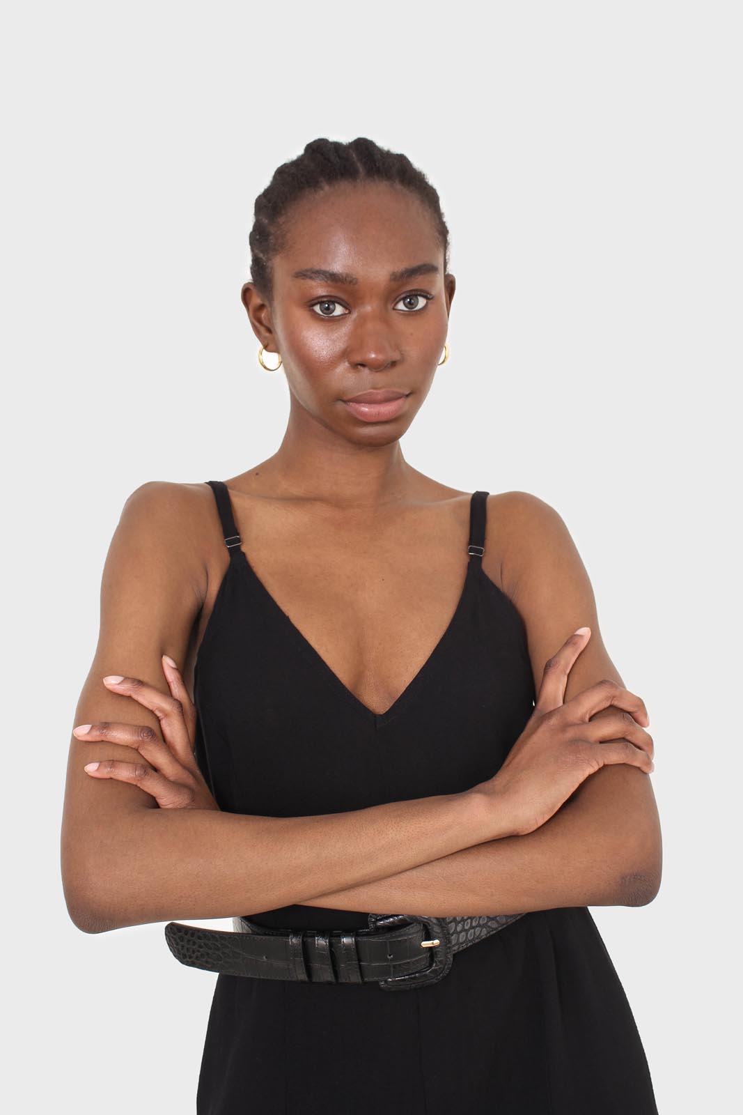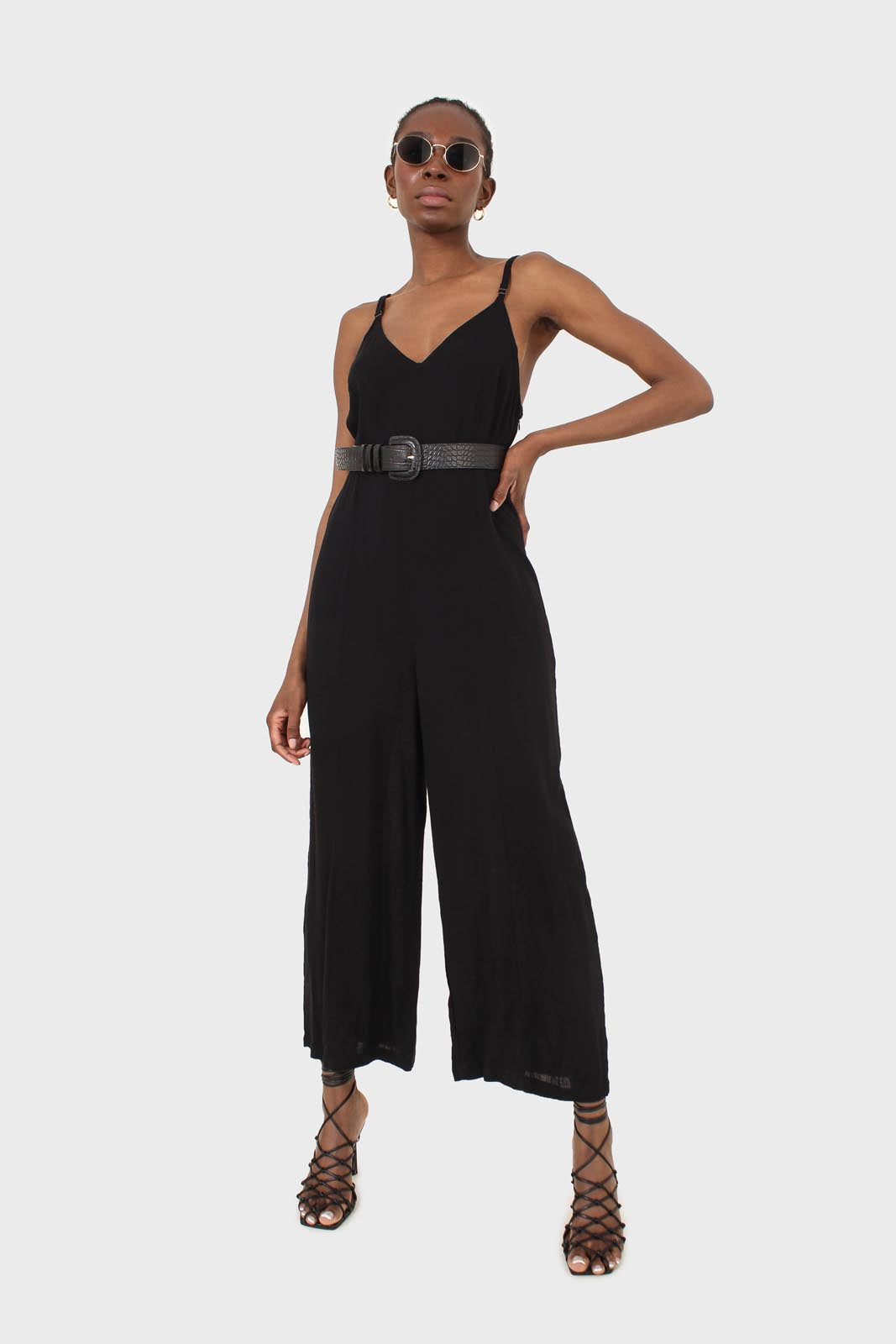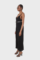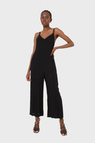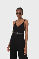 Black deep V spaghetti strap jumpsuit