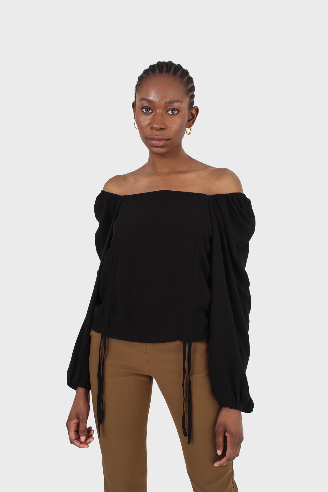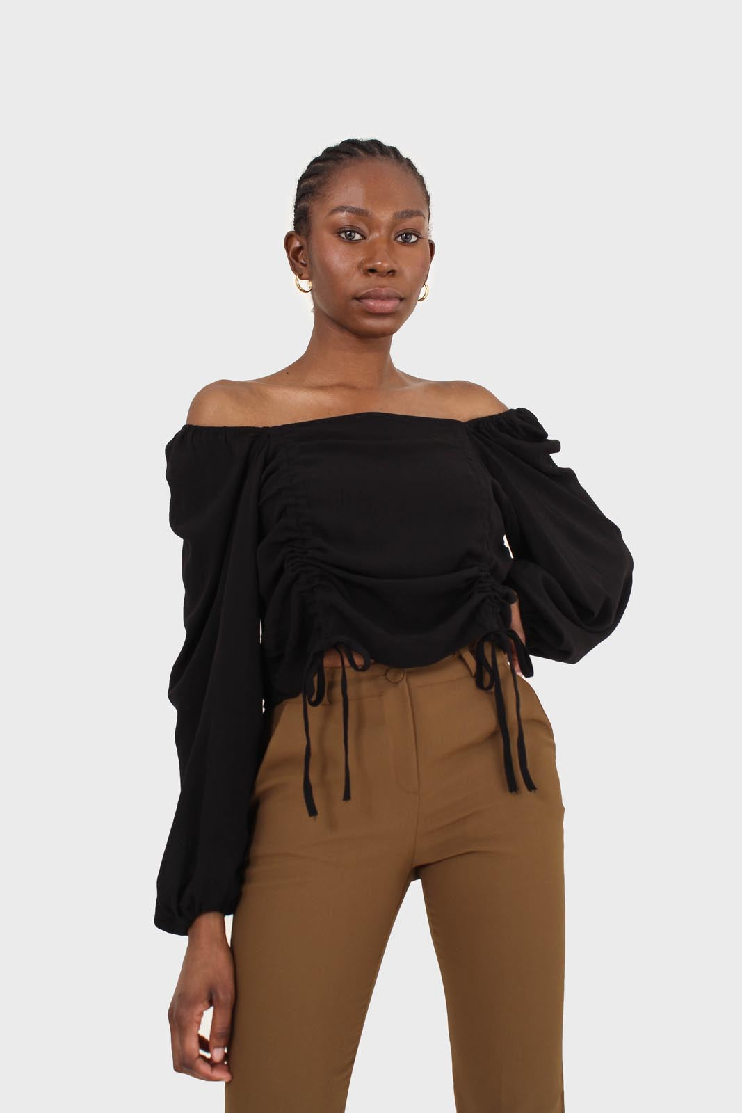 Black double ruched tie detail long sleeved top