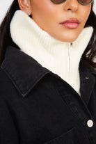 Black oversized pocket front denim jacket