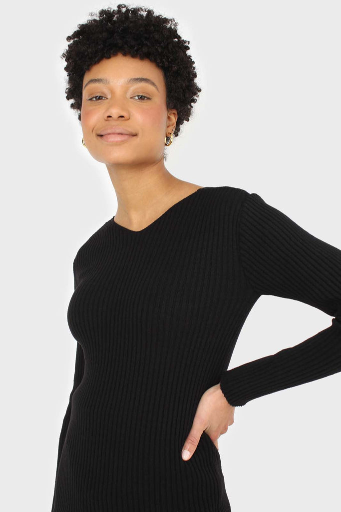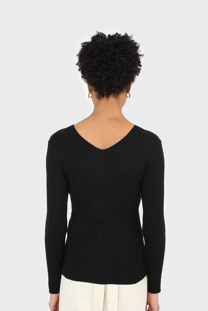 Black ribbed double V fitted knit top