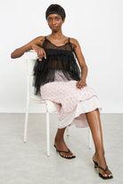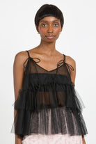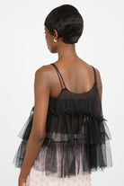 Black sheer strappy tiered tank