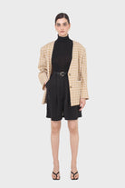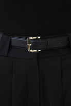 Black silky pleated shorts