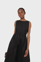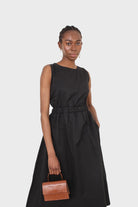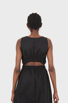 Black sleeveless flare open back maxi dress