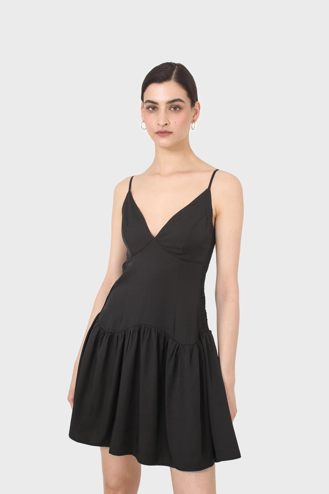 Black spaghetti strap tie back mini dress