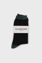 Black textured diamond green trim socks