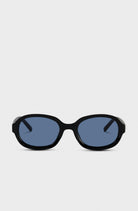 Black thick oval frame blue lens sunglasses