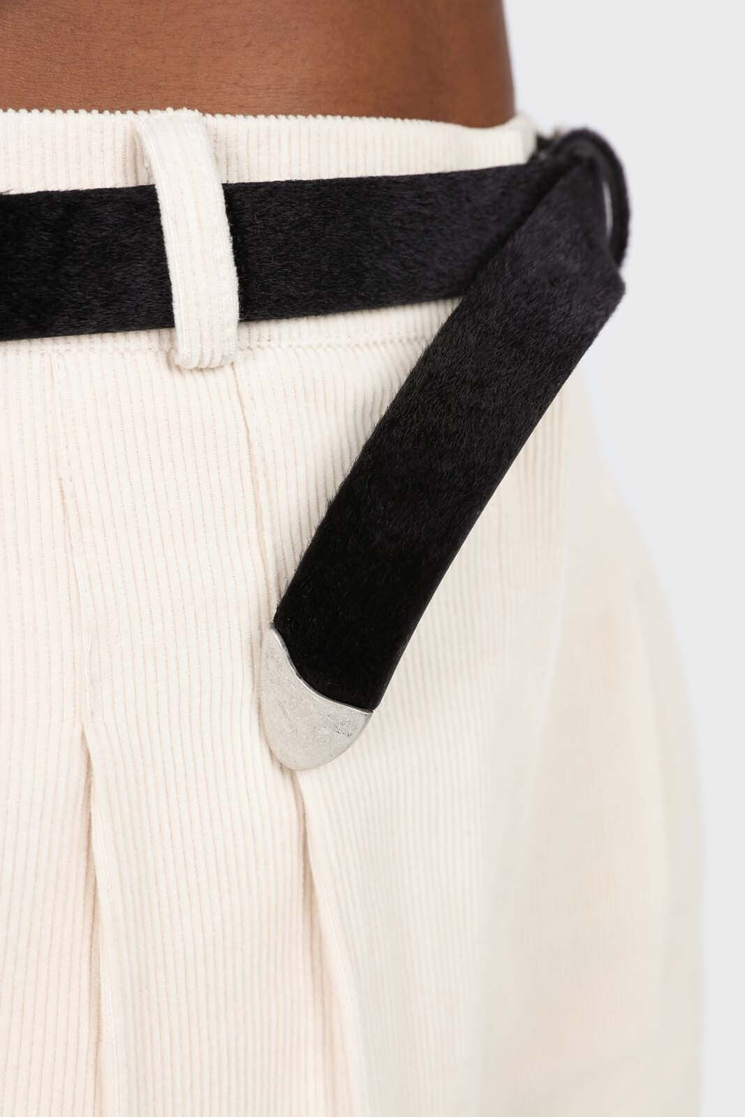 Black thin hairy cowboy buckle belt