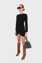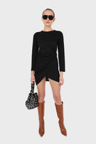 Black twist side fitted jersey mini dress