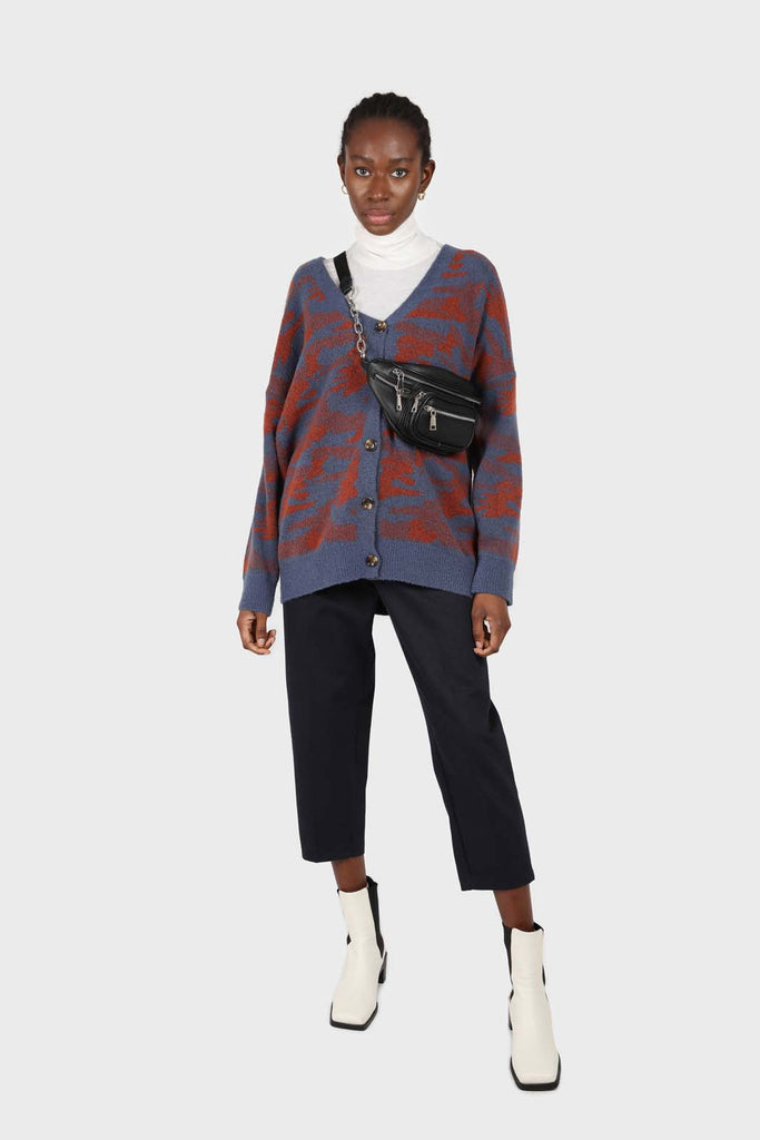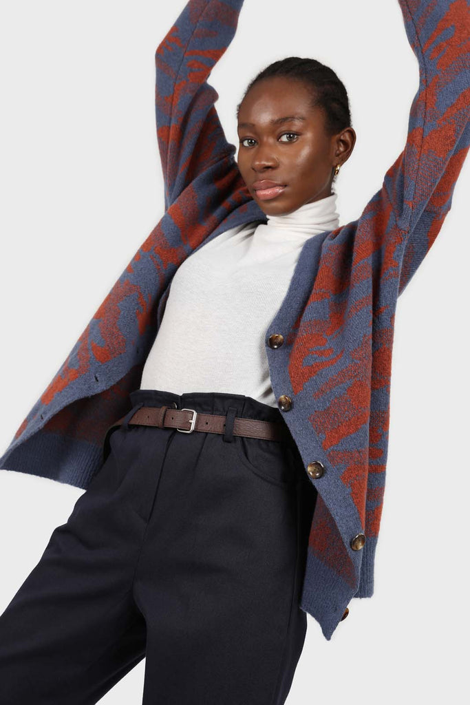 Blue and brown abstract pattern cardigan