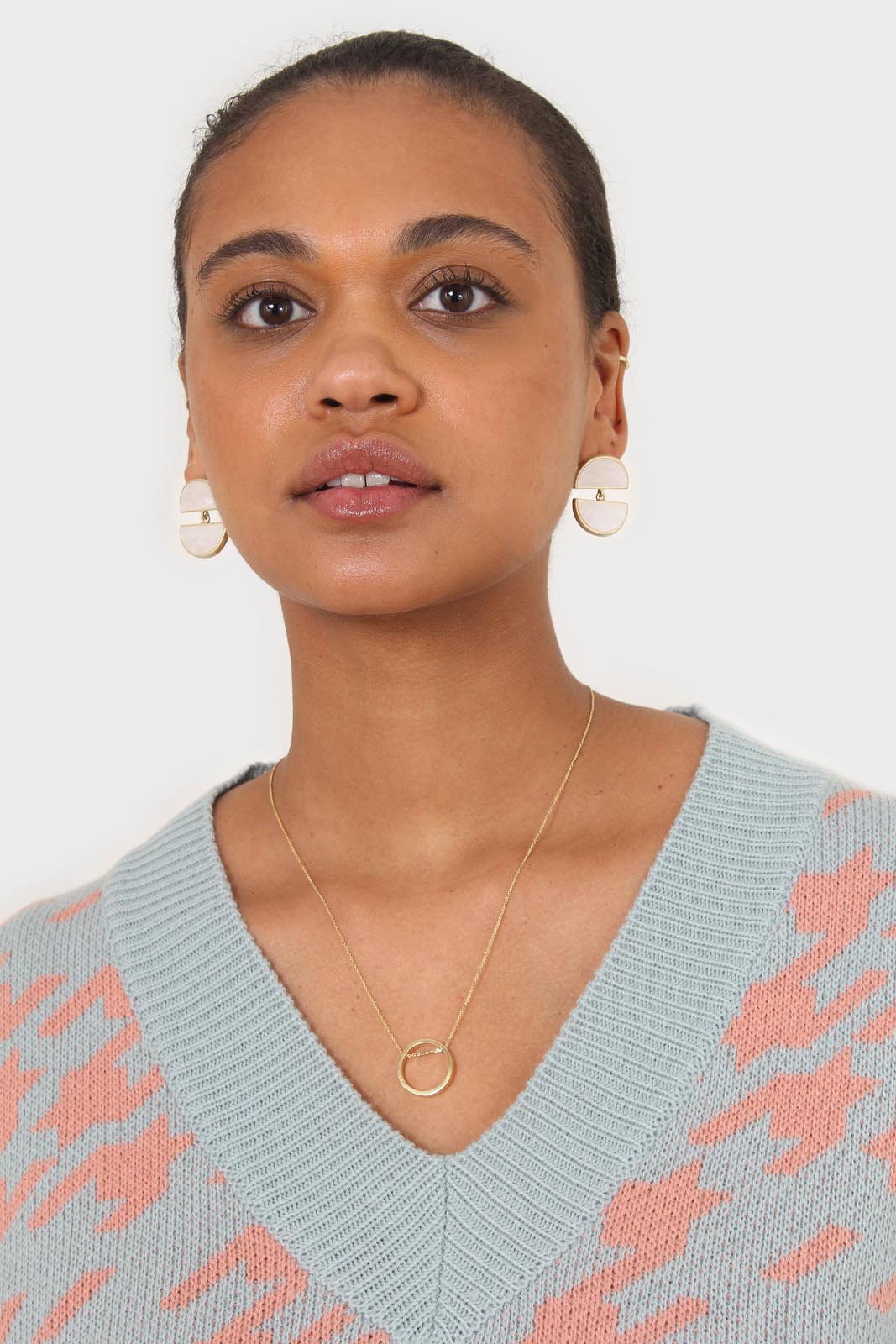 Blue and pink giant houndstooth sweater vest