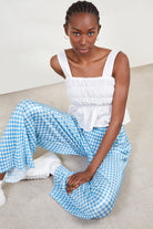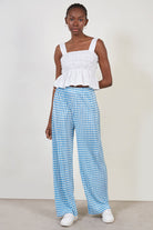 Blue gingham side slit trousers
