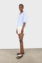 Blue gingham tie back puff sleeved top