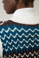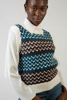 Blue intarsia wave ivory trim sweater vest