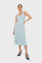 Blue square neckline ribbed midi dress