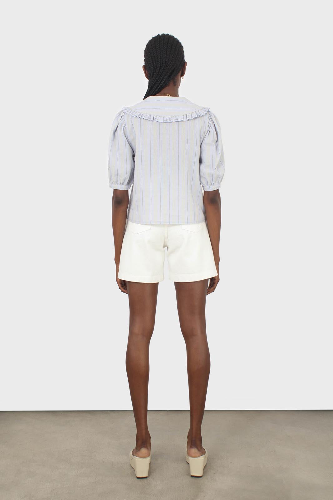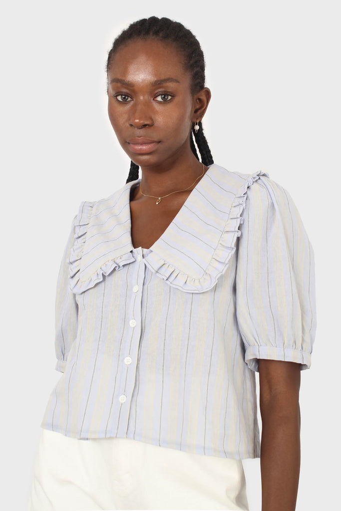Blue striped oversized collar blouse