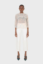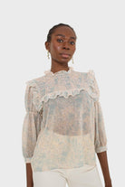 Blue watercolour printed ruched blouse