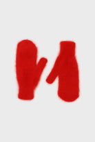 Bright red mohair mittens