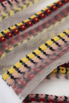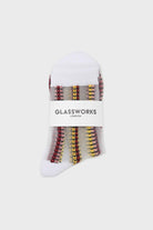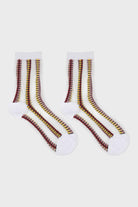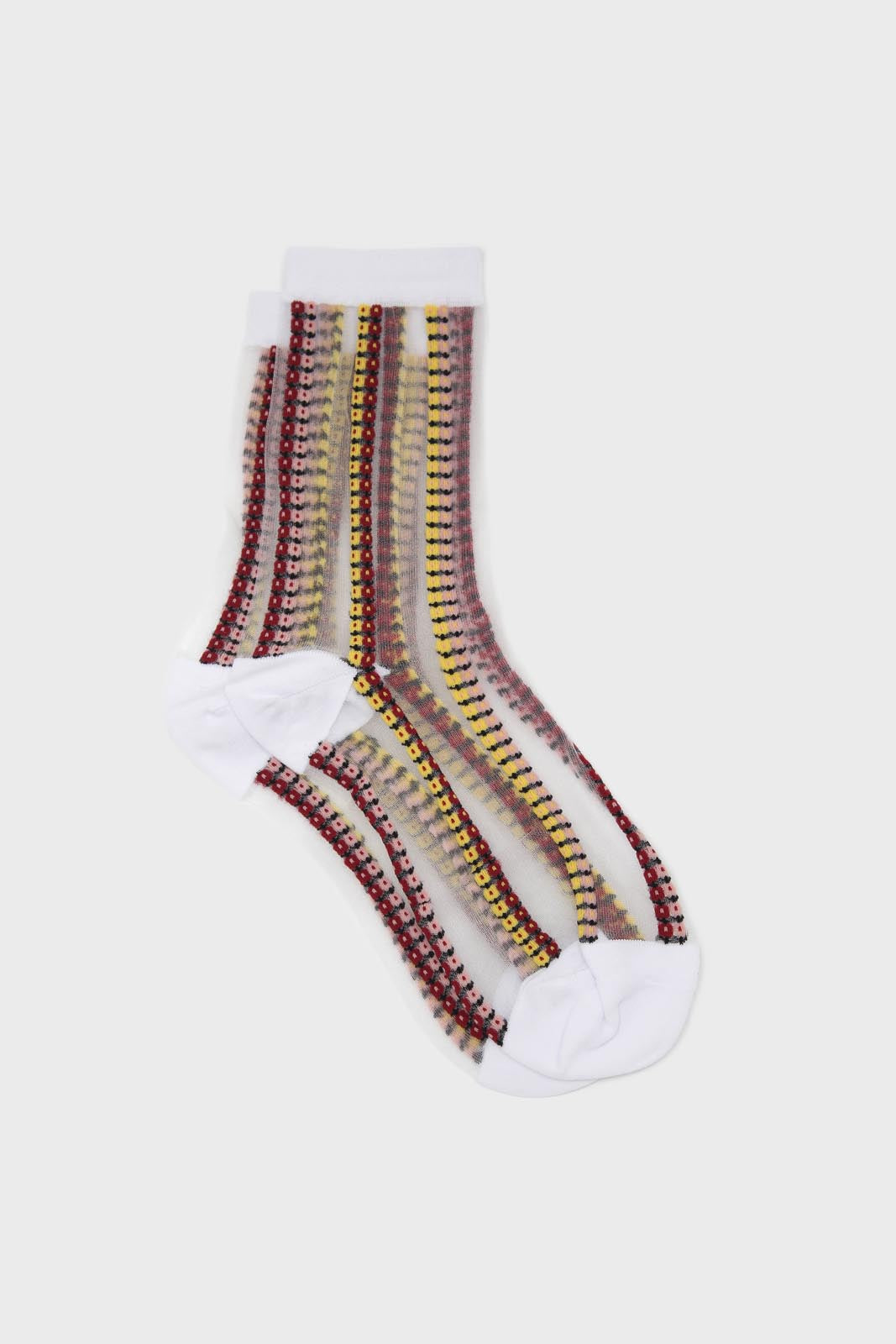Burgundy and yellow floral stripe sheer socks