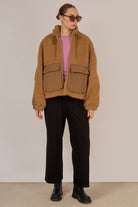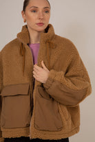 Camel teddy patch pocket jacket