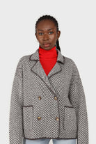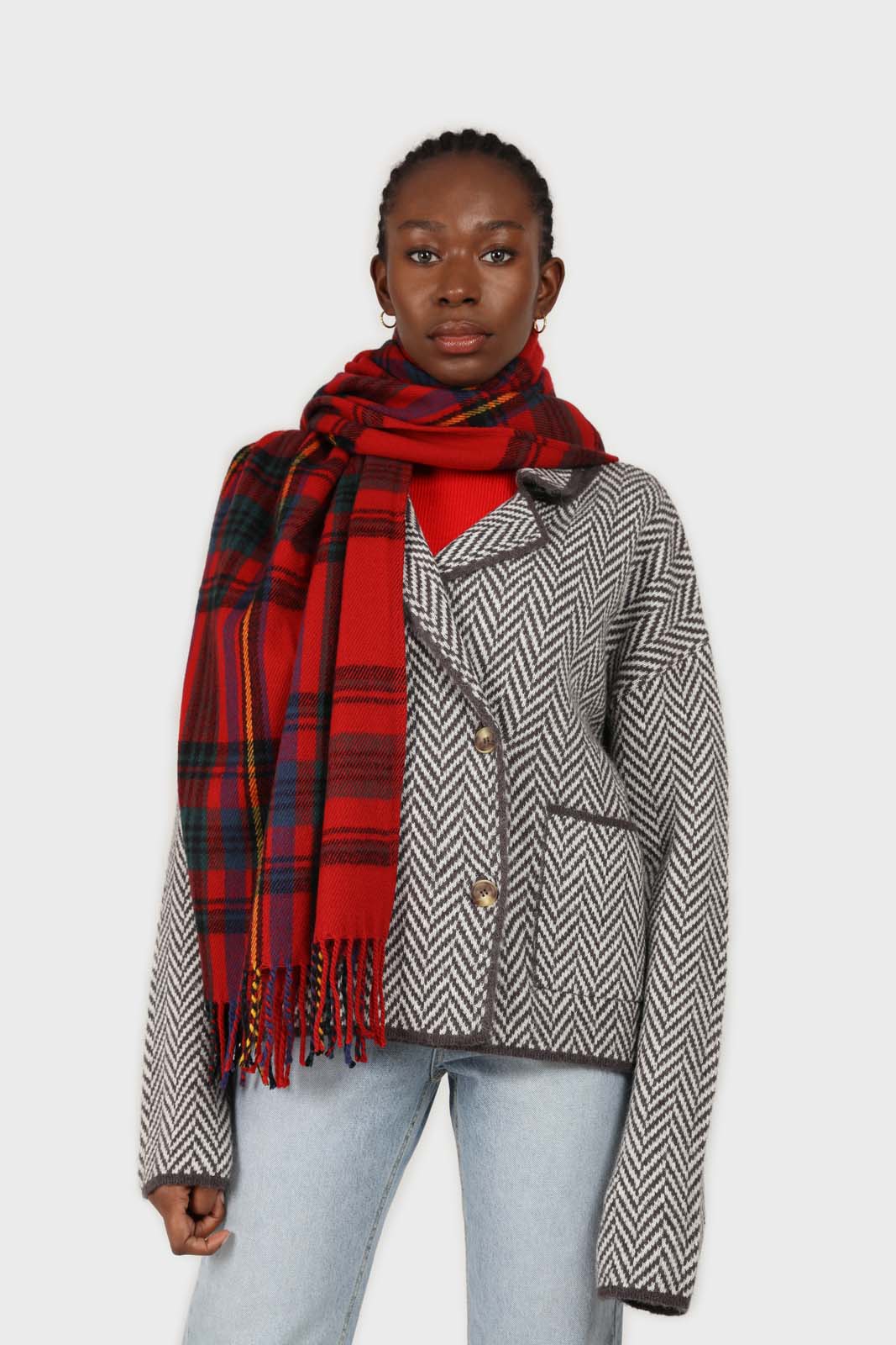 Charcoal herringbone alpaca wool blend cardigan