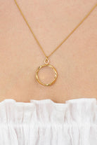 Charm necklace - Gold irregular circle ring pendant - 70cm