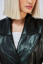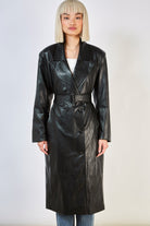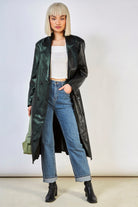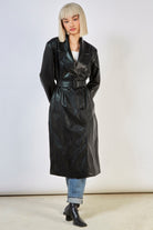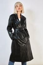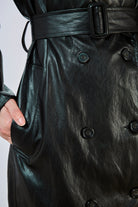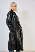 Black vegan leather trench coat