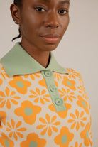 Cream and orange intarsia floral mint collar jumper