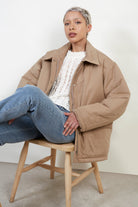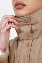 Dark beige teddy lined cinch back parka