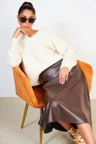 Dark brown vegan leather long skirt
