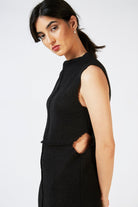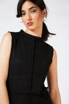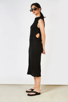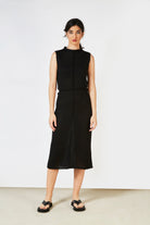 Black sleeveless knit dress
